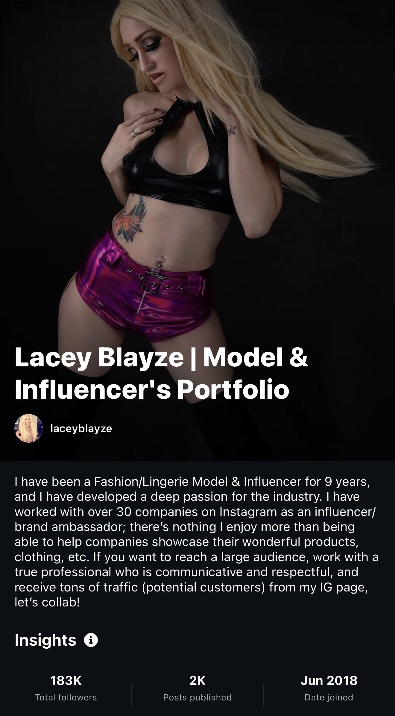 Model | Actress | Content Creator | Instagram Influencer | Podcast Host | Live Show Host | Co-Host on KNAC.FM Radio | CEO & Editor-in-Chief of Midnight Nation Magazine | Studio Manager of Vision Studios | Groupshoot Organizer | Web Design & Development Expert | Graphic Designer | Model Mentor | Teacher of Modeling Workshops |
